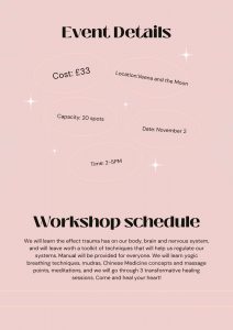 The Kintsugi Heart Healing Workshop is a transformative healing experience designed to support emotional, physical, and energetic restoration. Through a combination of guided practices, energy work, and body centred techniques, participants will explore how trauma affects the body, nervous system, brain and heart, and learn practical methods to festore balance and resilience.